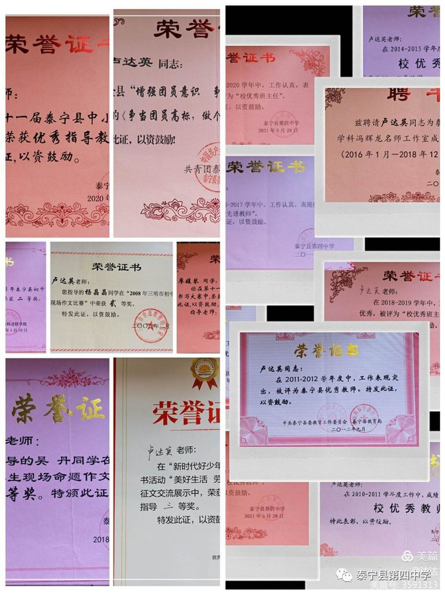 教师的职业是平凡的。卢达英老师矢志不渝坚守在教学第一线,并以高度的热情投入教育教研工作。在教学实践中,她紧跟教育改革步伐,不断丰富教育理论知识,着力提高语文专业素养,积极探索科学有效的教学方法。同时她还积极参加各级各类教学比武,曾获得县中学语文课堂教学比赛一等奖、县初中语文青年教师优质课评选二等奖等殊荣。