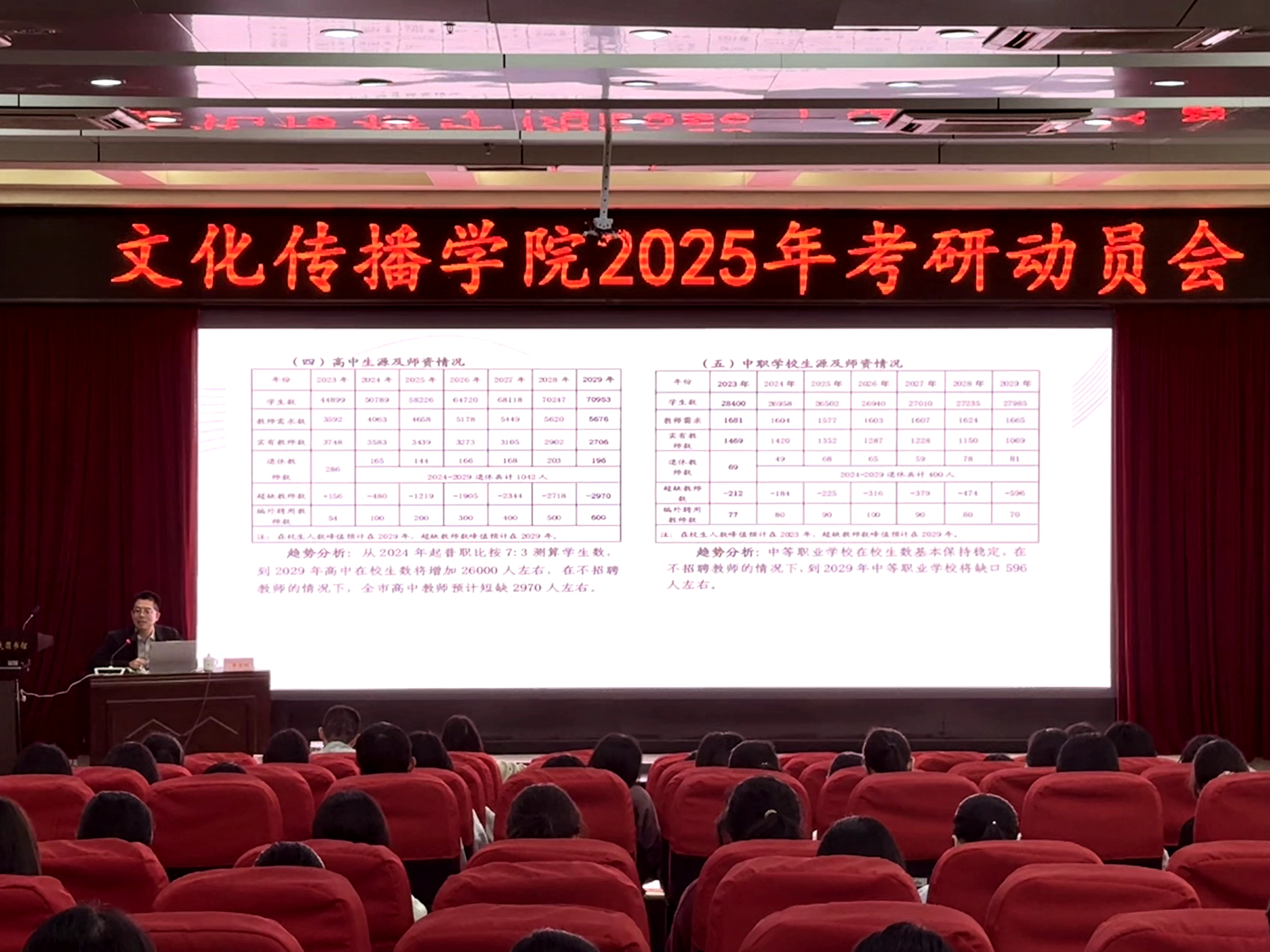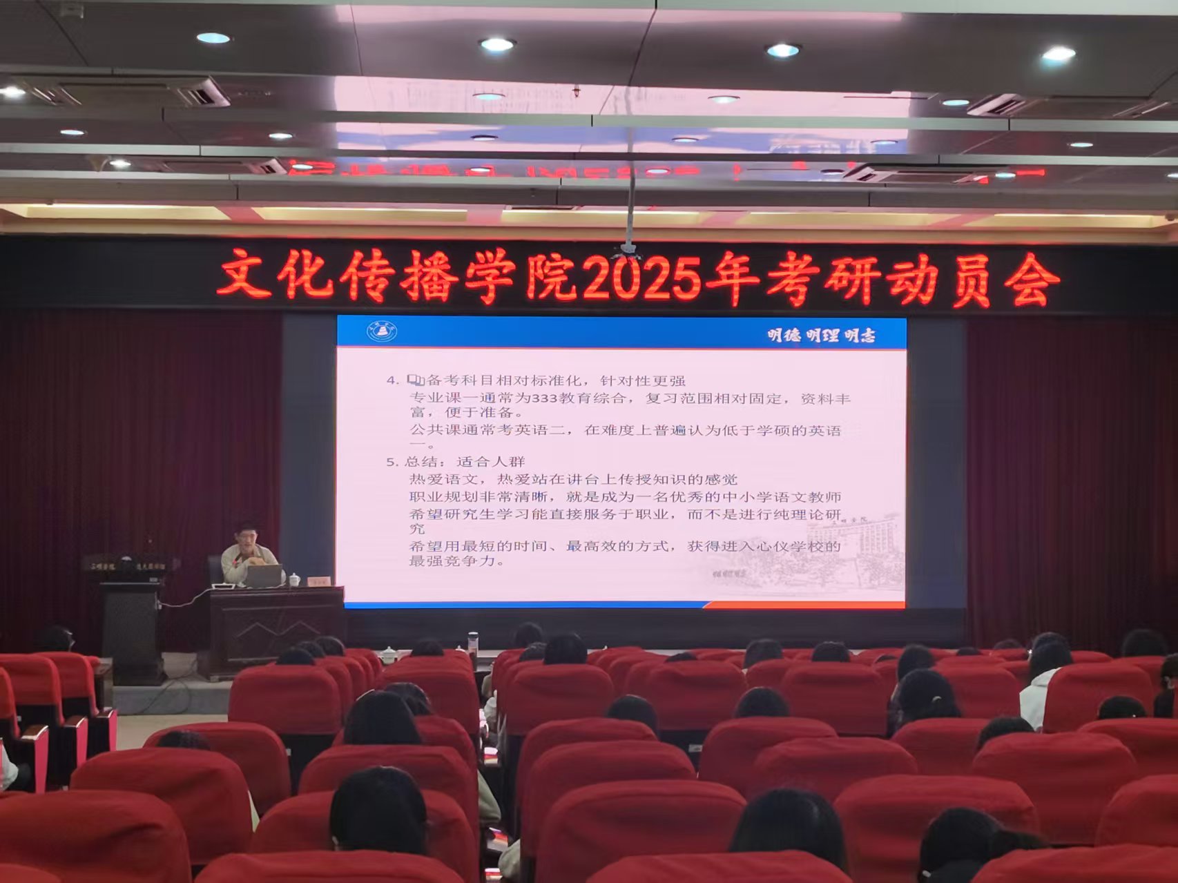动员会上,文化传播学院党委书记韩巍巍结合自身考研经历与往届优秀学生案例,鼓励在场同学勇敢突破自我,通过考研实现蜕变。文化传播学院党委副书记范桂英则以学院往届考研学子的成功案例为依托,阐释考研带来的机遇,鼓励同学们结合自身情况合理规划,积极备考,在学术深造的道路上坚定前行。