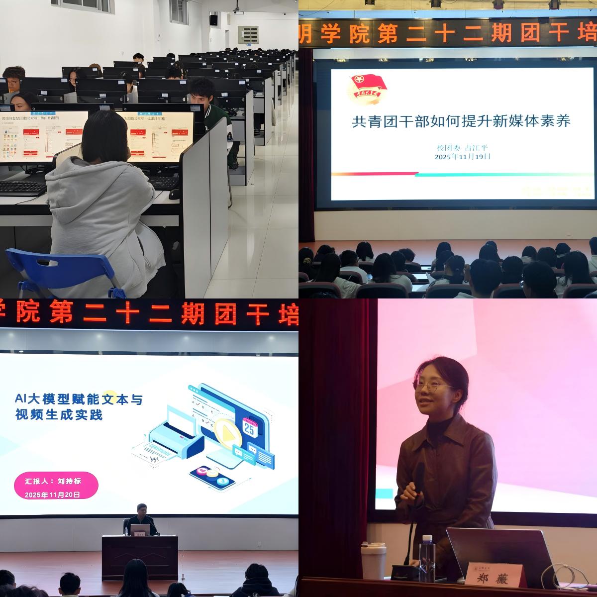 团务工作如何提质增效?青年服务如何精准对接?学生干部如何锤炼本领?培训班精准聚焦团学工作实际需求,设置10项多维度实务课程。从“智慧团建系统使用”“AI大模型赋能文本与视频生成实践”等技能培训,到“高校学生干部的眼界情怀和担当”“法律护航青春”“新闻写作专题”等专题授课,全方位覆盖团学工作需求。同时,以“探寻真因路,实干解难题”为主题,组织学员围绕“AI学习工具对大学生学业效率与知识内化的影响”“班团学生干部培养现状及作用发挥”“大学生‘早八人’早餐消费习惯与早餐服务优化”等11个方向开展调研,形成调研报告及优化建议,有效提升学员发现问题、解决问题的能力,为学校团学工作发展贡献青年智慧。
