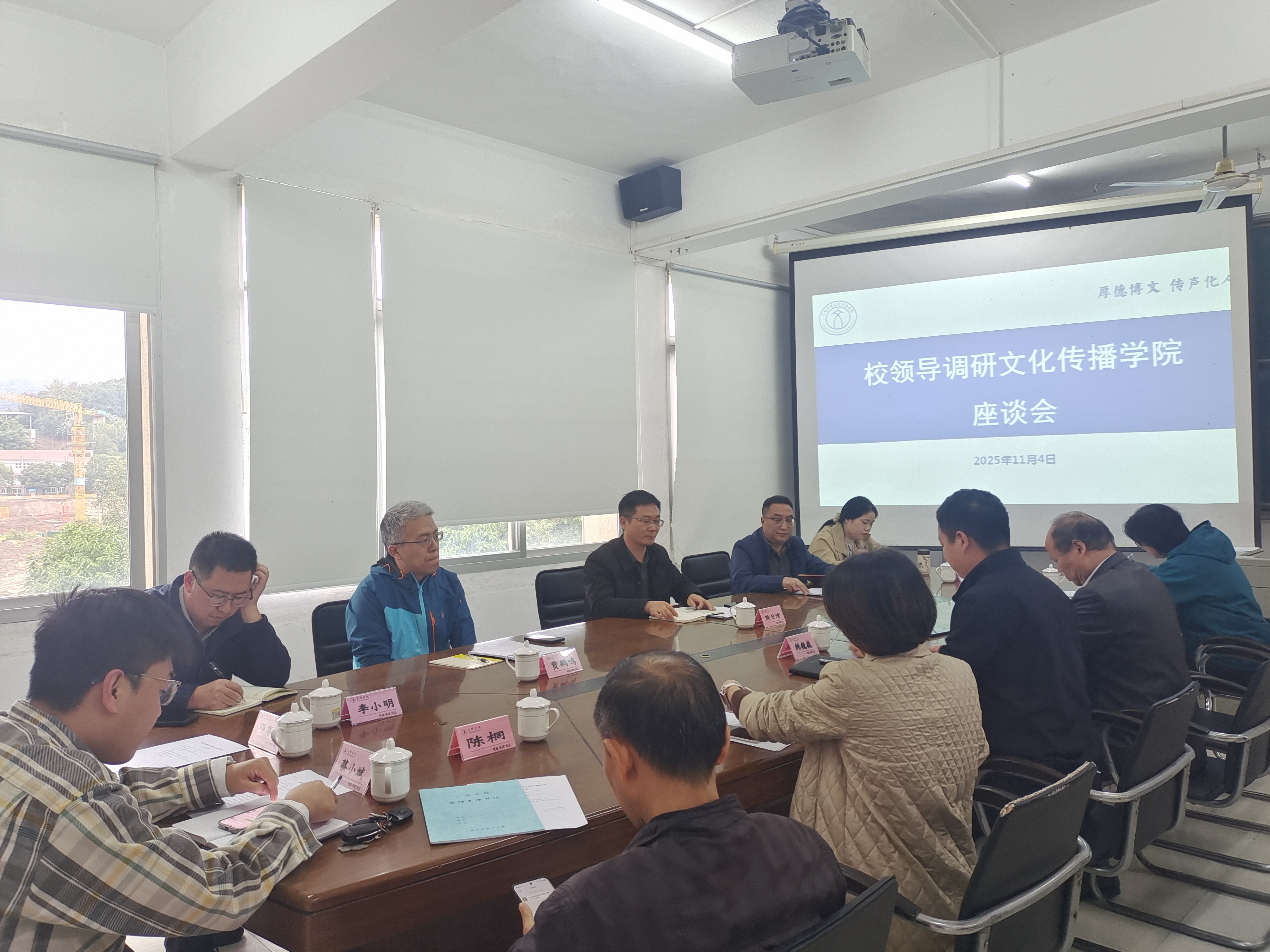 11月4日下午,陈日清副校长带领科技处(社科处)工作人员赴文化传播学院开展科研工作与学科申硕专题调研,学校发展规划处(学科建设与研究生处)部门负责人陪同,学院党政领导班子成员和相关教师代表参加调研座谈。