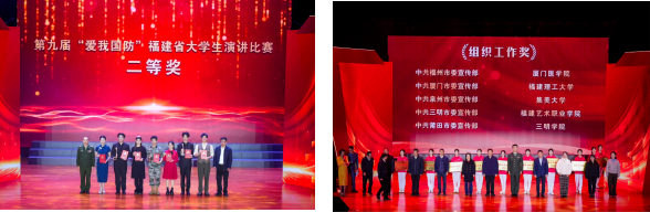 第九届“爱我国防”福建省大学生演讲比赛决赛于2025年12月24日至26日在厦门医学院举行。文化传播学院张萌、范煣颖老师指导,林智宸、吴诗柠、林佳骏三位同学共同演绎的作品《以微光显影历史,用青春共筑未来》斩获二等奖,创近年参赛最佳战绩!三明学院荣获组织工作奖。