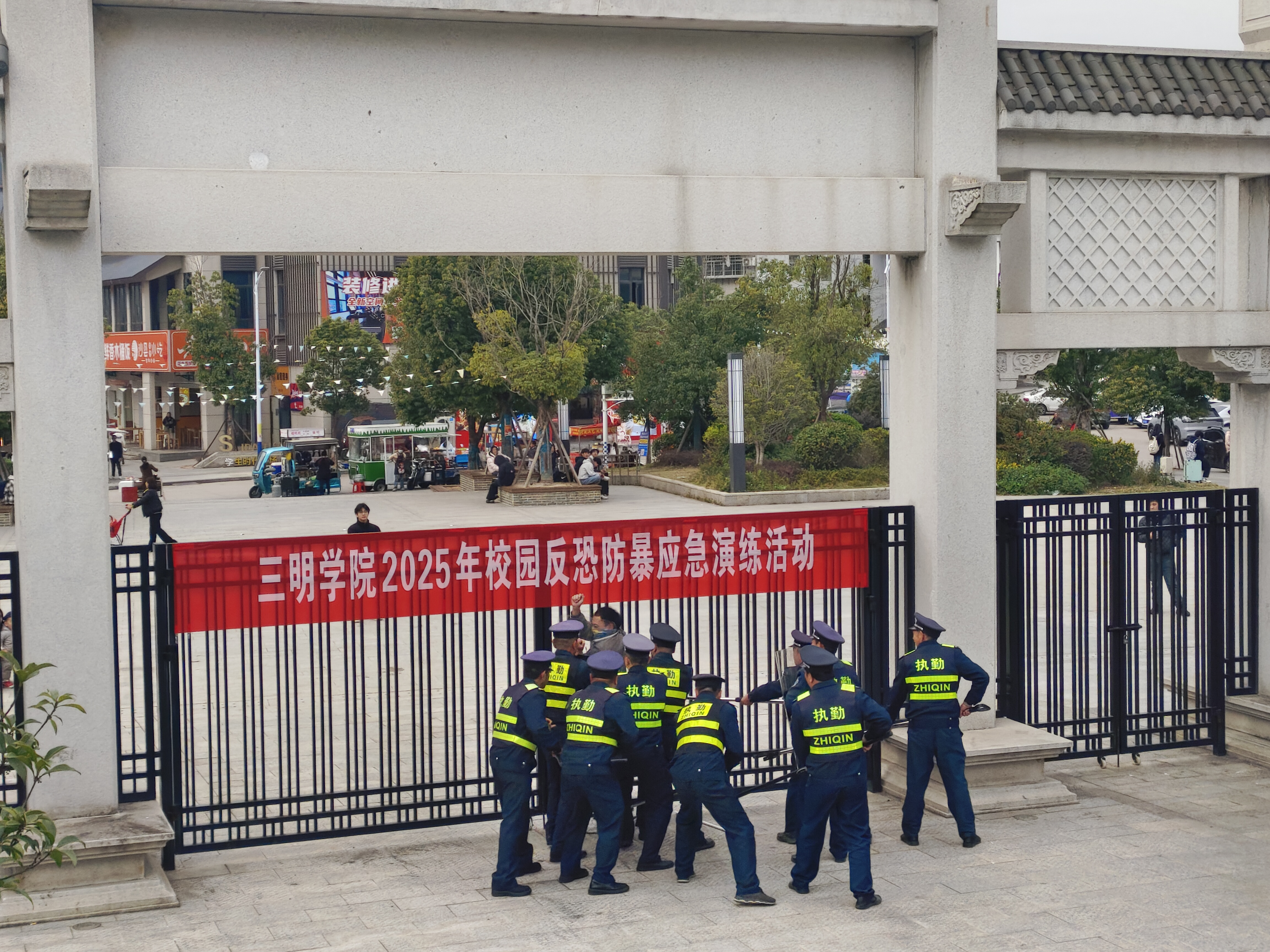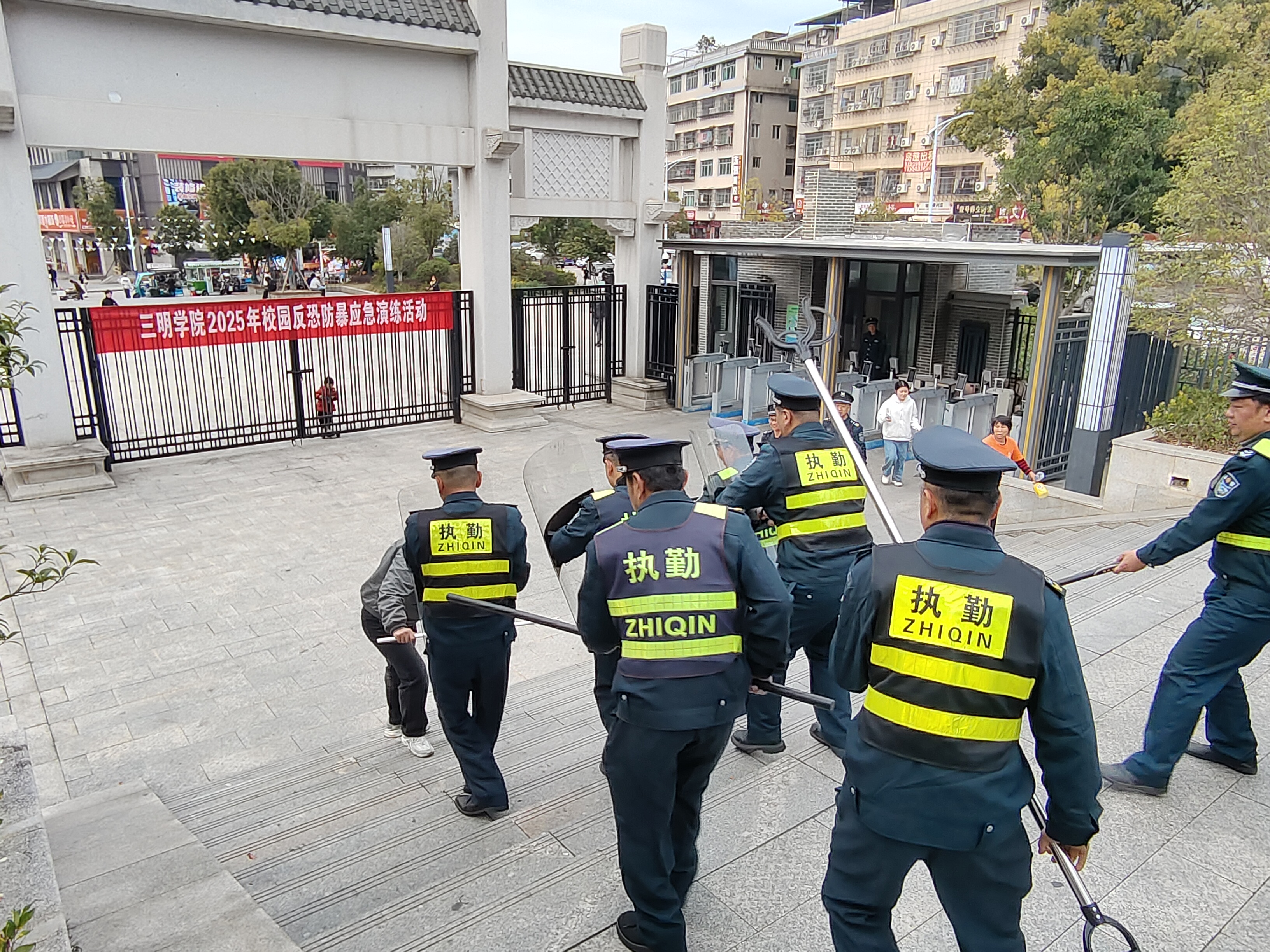 12月31日下午,三明学院在校西门广场开展校园反恐防暴应急演练活动,保卫处、学生处、各学院综治联络员和值班辅导员、安保队伍及学生代表等百余名师生代表参加活动,荆东派出所协同联动参与实战演练,三元区反恐工作领导小组莅临指导。