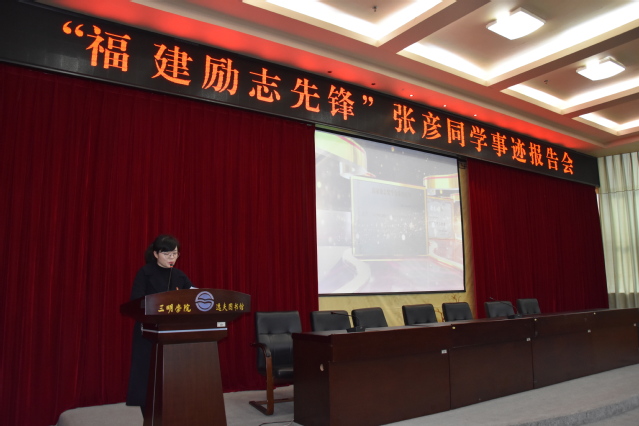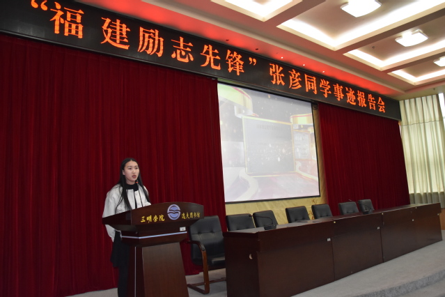 张彦同学的成长不是一件偶然的事,她是我校贯彻立德树人根本任务,坚持“三明三康”育人理念和“经世致用、自强致胜”成才方略的教育结果,是对学校育人工作的一次检验与表彰。近些年来,我们欣喜地看到,越来越多的优秀学生涌现出来,用他们的事迹彰显当代大学生的风采与骄傲、用他们的精神演绎“明德明理明志”的校训精神。我们希望,更多的学生以张彦为榜样,以我们的福建省最美大学生叶慧樱为榜样,以厦门金砖会晤服务团队、世界机器人大赛冠军团队、德国红点奖、美国IDEA工业设计奖获奖团队为榜样,以所有优秀的力量为榜样,崇尚典型、学做先进,进而内促个人拼搏奋进,践行“经世致用、自强致胜”的文化精神,奋力成长为有三明学院深刻烙印,能够担负民族复兴大任的有用之才、栋梁之才、致用大才。