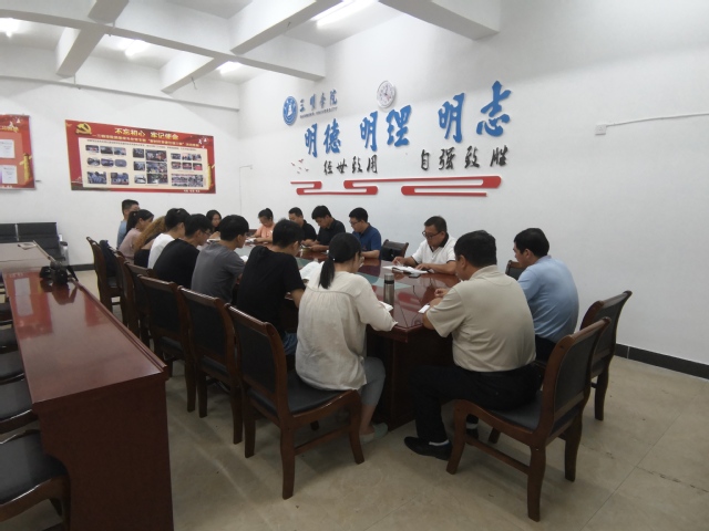 会议指出,开展“不忘初心、牢记使命”主题教育,是贯彻落实习近平新时代中国特色社会主义思想的实际行动,是当前紧迫而重大的政治任务,必须提高政治站位,把思想和行动统一到把中央、省委和学校党委部署要求上来。会议强调,要牢牢把握主题教育的目标任务,认真按照校党委“做实基层党支部学习教育和检视整改”要求,以高的标准、实的举措、严的作风推进主题教育有序开展。一是强化理论武装,认真开展学习教育,坚持读原著、学原文、悟原理,结合工作实际,采取集体学习和个人自学相结合方式,深入学习习近平新时代中国特色社会主义思想,深刻领会蕴含其中的丰富内涵、核心要义,确保实现理论学习有收获、思想政治受洗礼。二是深入基层一线,扎实开展调查研究,强化问题导向,坚持以生为本,紧紧围绕学生管理工作中的重点难点问题开展调研,把身子沉下去,把情况摸清楚,把对策找出来,使调研的过程成为提升学生管理服务水平的过程。三是坚持统筹兼顾,深刻进行检视反思,以多种形式、多层次征求师生的意见建议,把问题找实、把根源挖深;同时,坚持两手抓、两促进,把主题教育与提升服务育人水平结合起来,与做好当前各项重点工作结合起来,真心实意、真学实用、真抓实干,确保主题教育取得实实在在的成效。