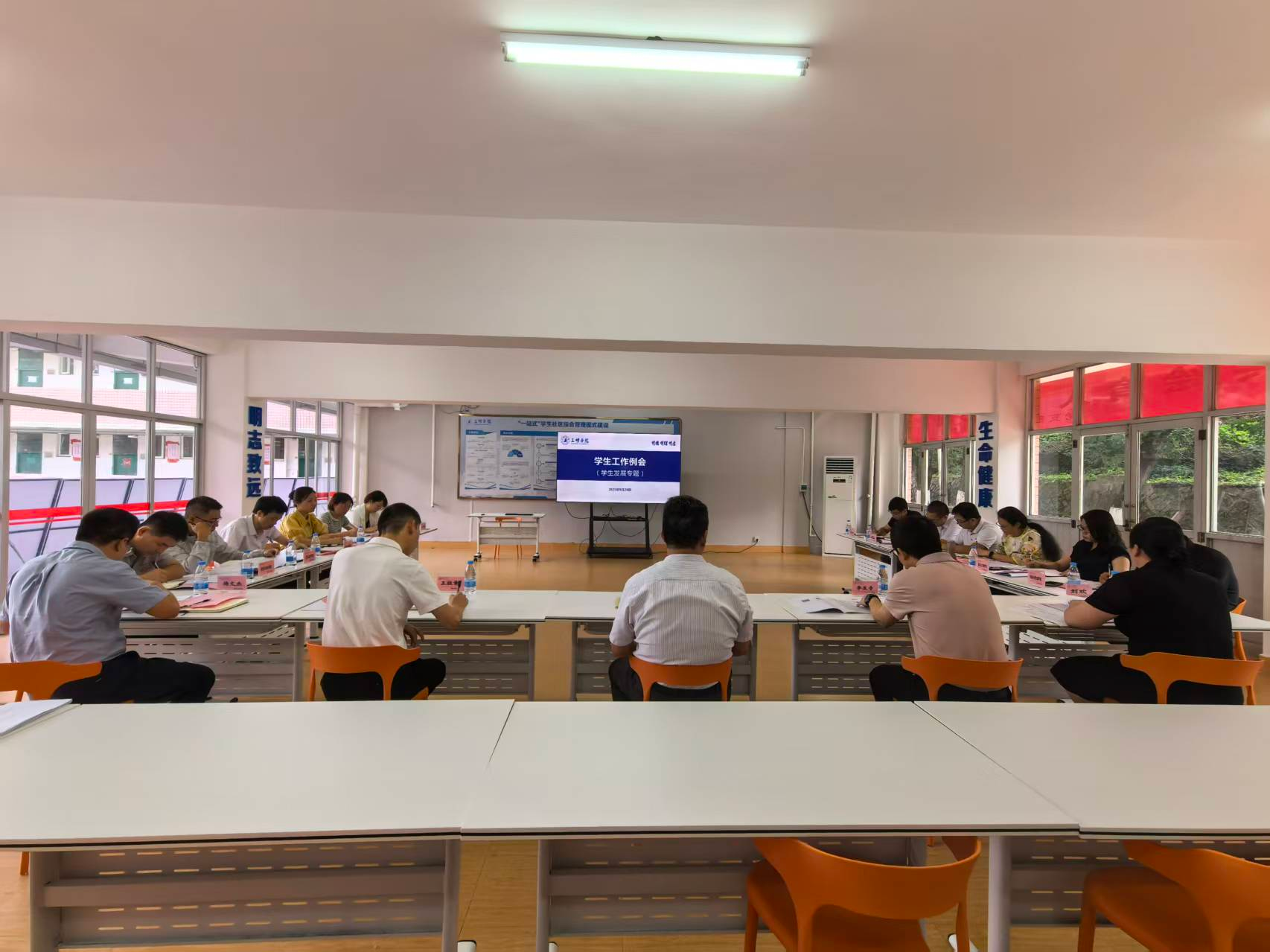 9月26日下午,我校在荷花苑2号楼活动室召开学生发展专题会。校党委副书记李莉星出席会议,党委组织部、学生处负责人以及12个二级学院党委副书记参加会议。