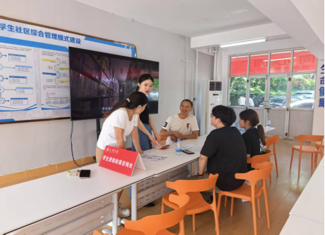 同学,行李我来帮你搬!”“报道点往这边走,跟我来!一站式学生社区服务点,身着红马甲的志愿者们忙碌的身影成为迎新现场最亮眼的风景线。社区依托党建+志愿服务模式,荷花苑6号楼B栋楼栋党支部组织辅导员、教师党员及学生志愿者组建迎新服务队,4名党员志愿者负责入校引导,7人驻守前台实时解决问题,从信息咨询到物资发放,从宿舍指引到家长答疑,用耐心与热情为新生搭建暖心桥