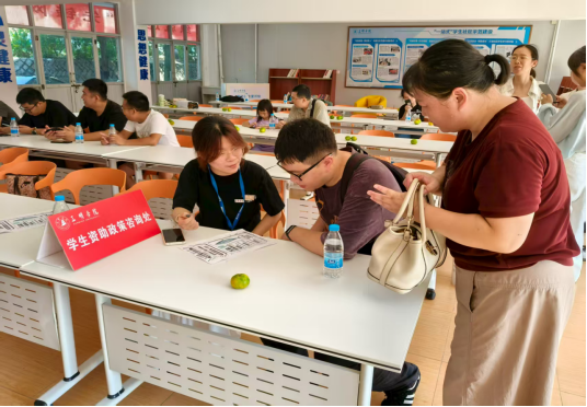 一站式不仅是流程的优化,更是温度的传递。社区提前摸排新生需求,针对不同群体提供定制化服务:为家庭经济困难新生开设绿色通道专属窗口,现场办理学费缓交、补助申请;为身体不便的新生协调调换至一楼宿舍,并安排志愿者同住提供日常帮助;为学院首届30名研究生新生准备学术启航礼包,内含课表、研究生手册、定制徽章等实用物品,助力他们快速融入学术生活。