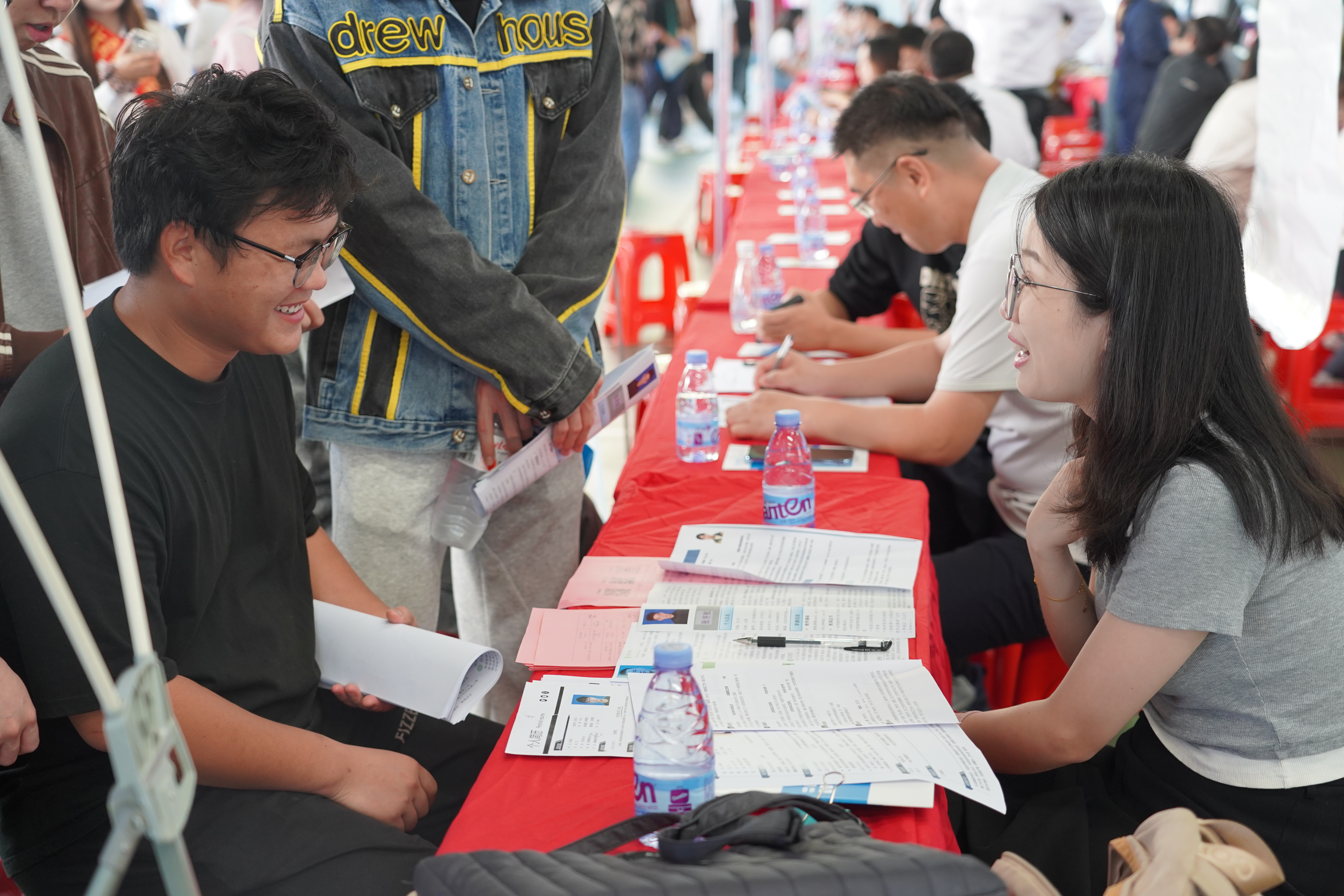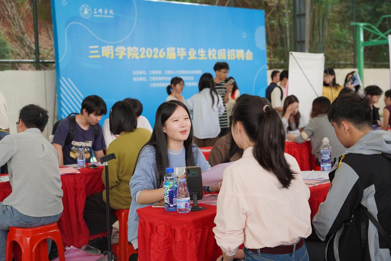 11月8日上午,三明学院2026届毕业生校园招聘会在学校北区雨盖篮球场如期举办。张君诚校长、李莉星副书记、三明市人社局王建峰副局长、南安市人社局黄志军局长到场指导,2026届毕业生一千余人次参与活动,现场咨询洽谈氛围热烈。