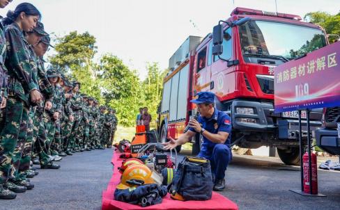 演练现场设置多个实战化体验环节。消防教官演示器材使用原理,师生实操灭火器“提拔握压”动作,协作铺设水带模拟高层供水救援。