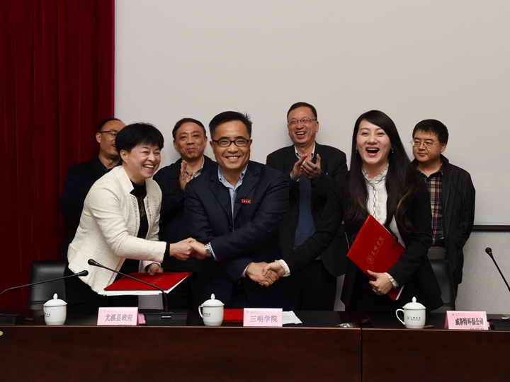 政府引导,联姻合作,协同育人是地方高校转型发展的必由之路,是区域企业提升竞争力的重要途径。2017年1月6日下午,三明学院威斯特环保产业学院成立暨政校企合作签约仪式在三明学院图书馆学术报告厅举行,三明学院校长刘健,副校长陈晓明、张君诚,尤溪县常委、常务副县长林翠玲,大田威斯特环保科技有限公司董事长李美慧,大连理工大学教授李爱民,教务处、科研处、资源与化工学院、机电工程学院、建筑工程学院、海峡动漫学院负责同志及资源与化工学院部分师生出席了活动。仪式由科研处副处长高松华主持。