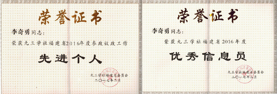 李奇勇院长获九三学社福建省委表彰