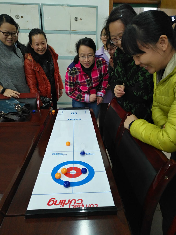 本次趣味竞赛活动共有18位教职工参加,人员分三组开展竞赛活动,比赛内容有桌上冰壶球大战、踢毽子大赛、“三八”妇女节知识竞赛三项,每项比赛设置一等奖一组,着重培养教职工的个人能力、集体观念和团队协作精神。简短的开幕式结束后,参赛教职工就投入到紧张、活泼而又充满友谊的比赛中,大家相互配合,奋勇争先。活动现场喝彩声、笑声此起彼伏,今年新增游戏项目“桌上冰壶球大战”最受女教职工欢迎,大家踊跃参与,体现了细心与智慧的结合,踢毽子大赛将大家带到了年轻时候的美好回忆,妇女节知识竞赛为大家上了一堂很好的知识普及课程。经过激烈角逐,比赛最终评选出桌上冰壶球大战、踢毽子大赛、妇女节知识竞赛三项冠军各一组,获奖的队伍将由学院工会发放精美奖品一份。
