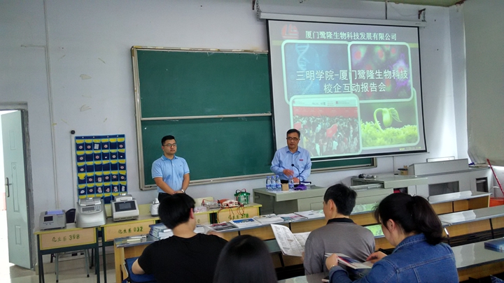报告会后,鹭隆公司进行了主要展品的展示与技术服务项目宣传,生物技术专业部分师生参观了展示活动,并与公司技术人员进行了互动交流。