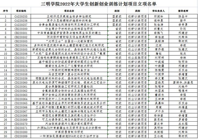 近日,经学校评审我院推荐参评2022年大学生创新创业训练计划的30个项目全部获批立项,其中国家级立项3项,省级立项7项,校级立项20向。具体名单如下: