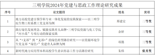 近日,三明学院2024年党建与思政工作理论研究成果评选结果正式公布。我院四位教师凭借扎实的理论研究和实践探索成果脱颖而出,荣获多项奖励,具体名单如下: