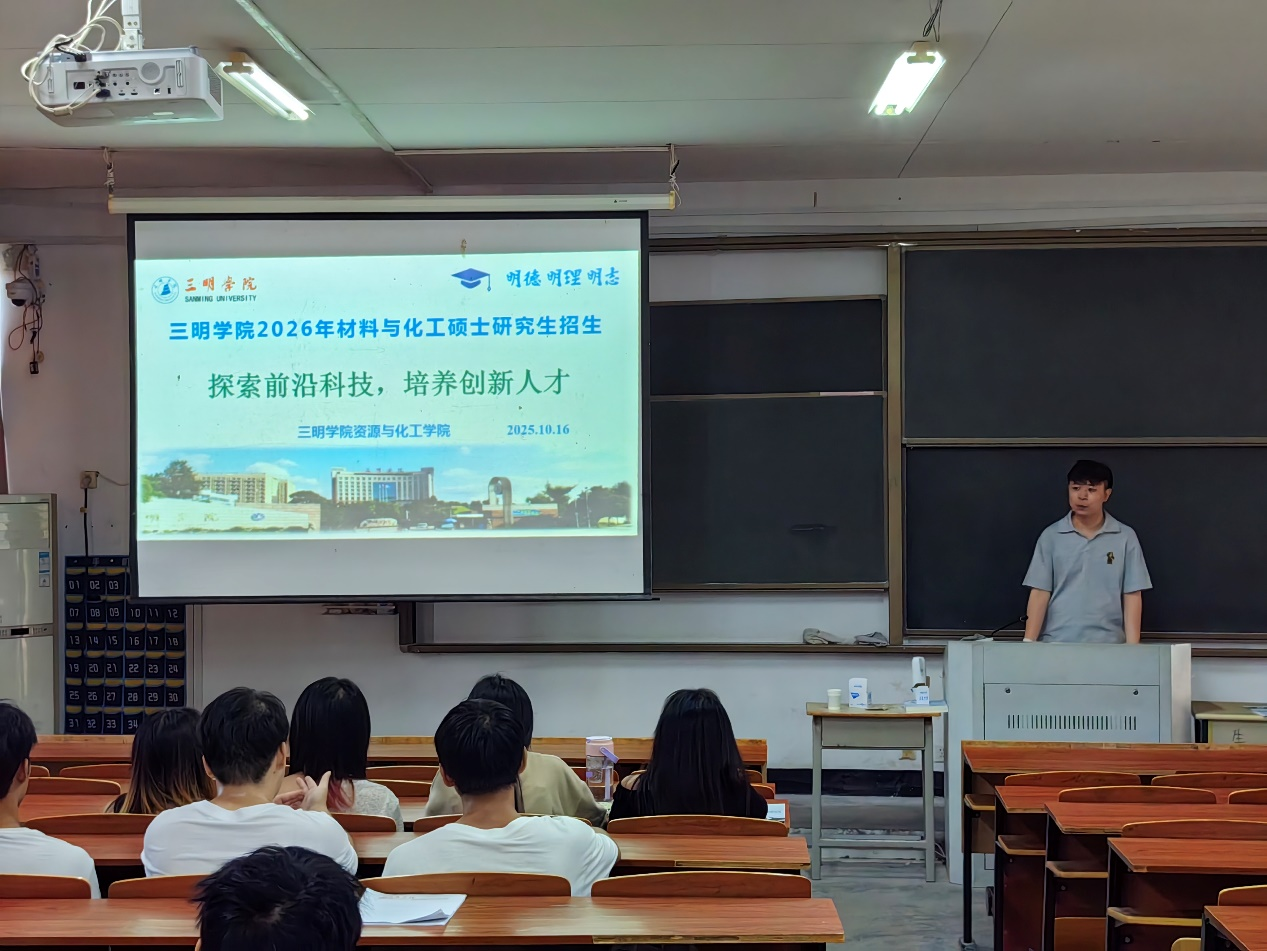 为吸引优质生源,加强校际学术交流,10月16日,三明学院资源与化工学院招生宣讲团专程赴武夷学院举行专场宣讲会。本次活动旨在向武夷学院的优秀学子全面介绍三明学院的硕士点建设、招生政策及培养特色,为其继续深造提供新的选择与机遇。