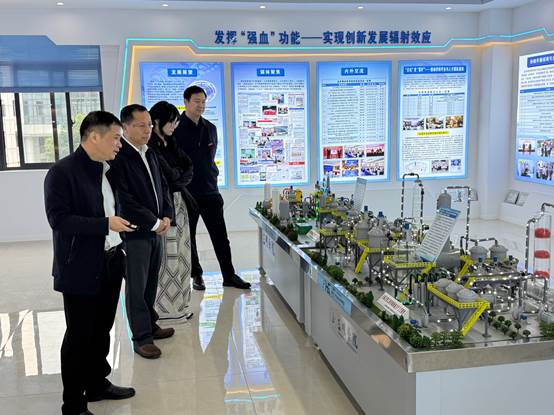 在参观交流过程中,李奇勇院长向刘振天教授一行介绍了学院在氟化工领域的产学研协同创新模式,特别是“企业点菜,研究院上菜”的订单式攻关机制,以及资源环境重点实验室在生态环境修复、绿色循环技术等方向的研究成果。刘振天教授对学院深度融合地方产业需求、推动科技成果转化的实践表示高度认可,并肯定了资源环境重点实验室在支撑区域绿色低碳发展和资源可持续利用方面发挥的作用