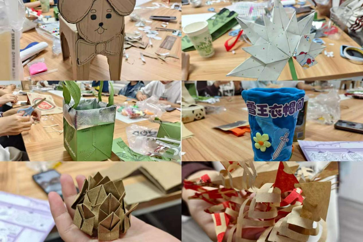 活动现场,志愿者们分工协作,对党建活动室进行全面清扫,营造整洁环境。随后手工创作环节,同学们巧用纸箱、塑料瓶等废弃物,制作出收纳盒等实用物品,实现资源循环利用。