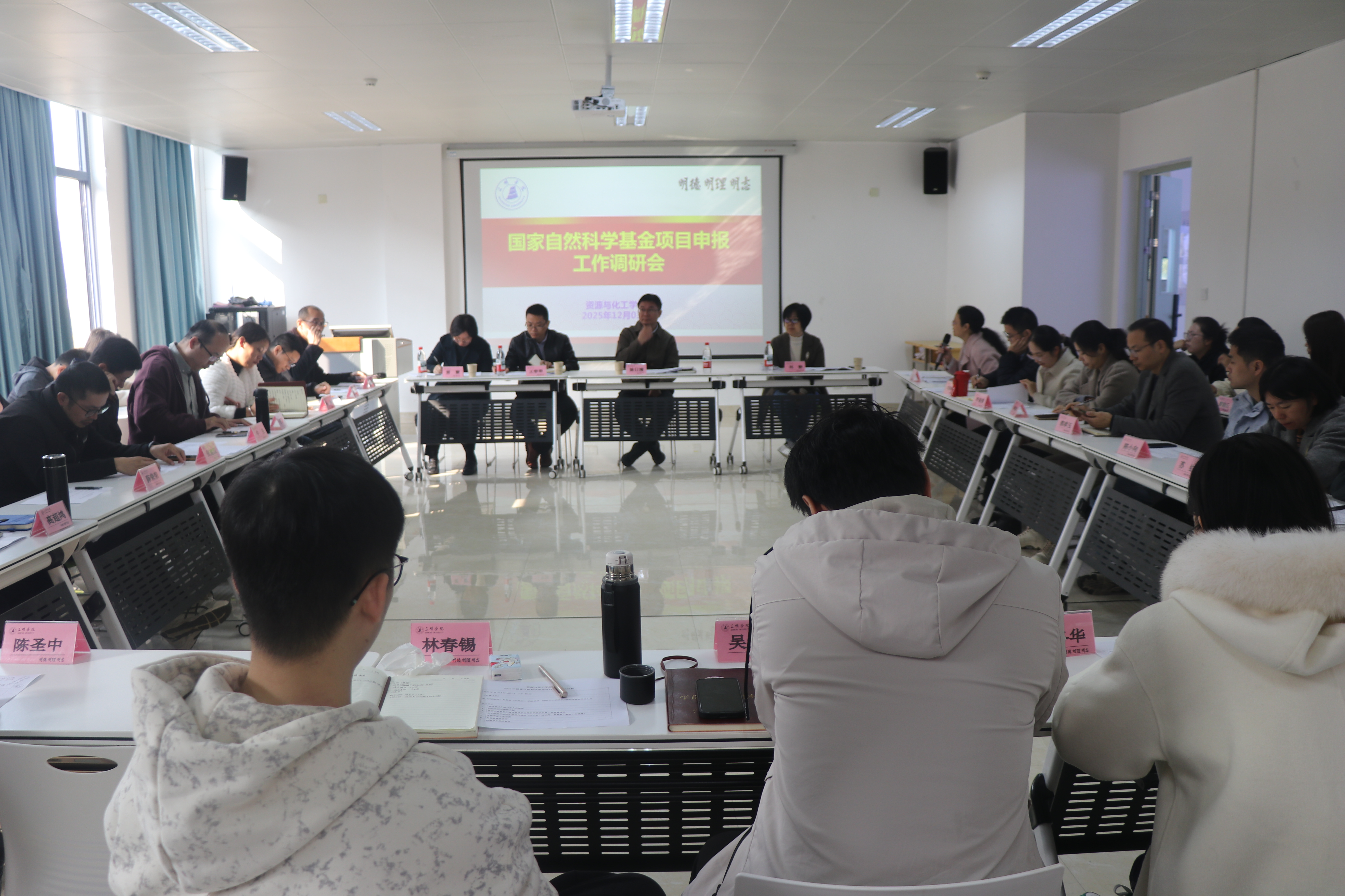 为扎实推进2026年度国家自然科学基金项目申报工作,有效提升申报质量与科研组织化水平,2025年12月3日上午,陈日清副校长携科技处(社科处)相关负责人到资源与化工学院调研国家自然科学基金申报工作情况,学院领导班子及全体2026年度国家自然科学基金申报人员共40余人参加会议。会议由学院党委负责人曾玲主持。