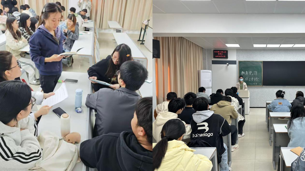 集体讨论会上,老师分享教学设计思路和相关教学经验。孙闽杰同学感慨:“这次见习让我认识到好课不止于知识传递,更在于心灵触达,启迪学生智慧。”分组讨论中,大家畅谈见习感悟,收获颇丰。
