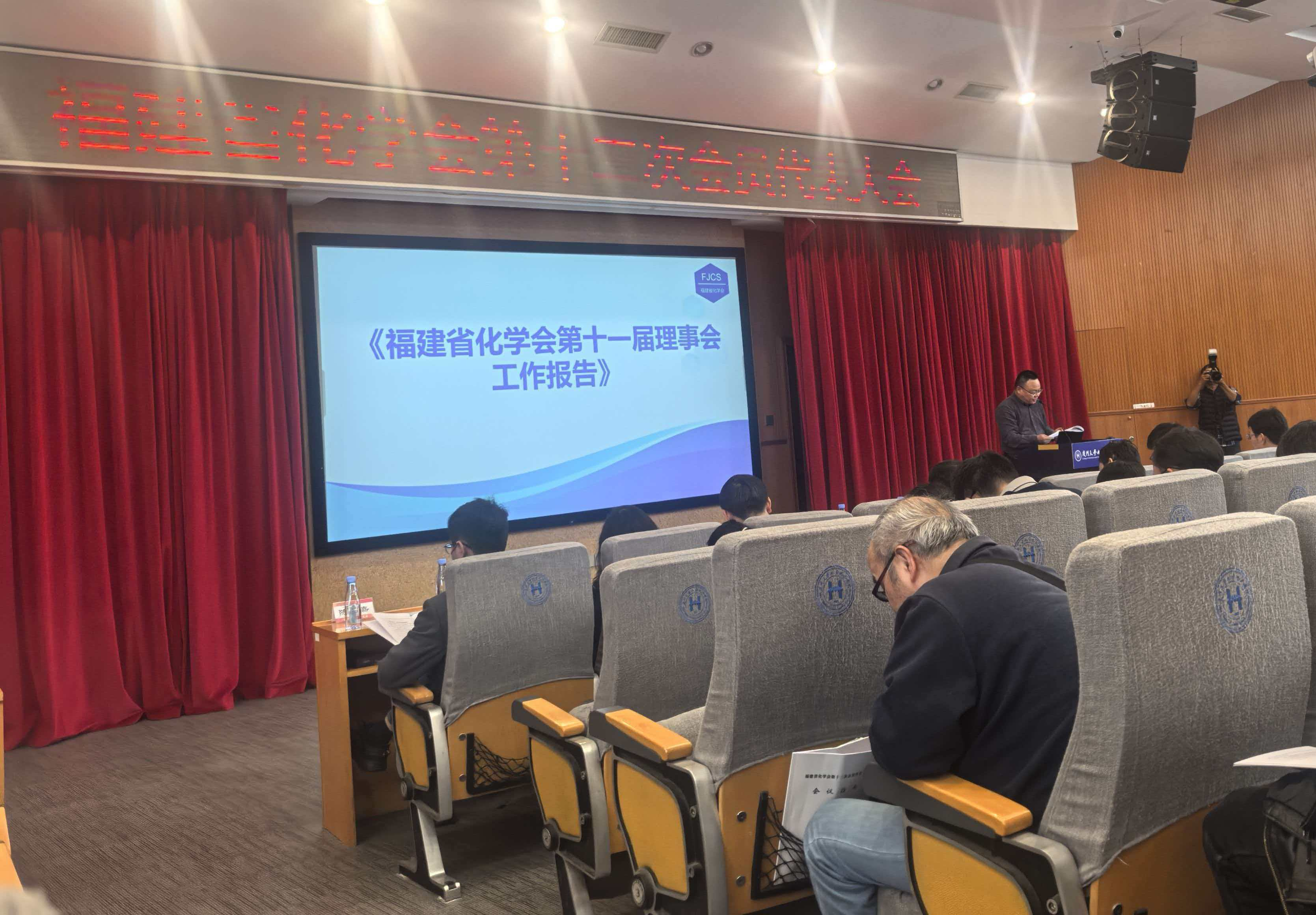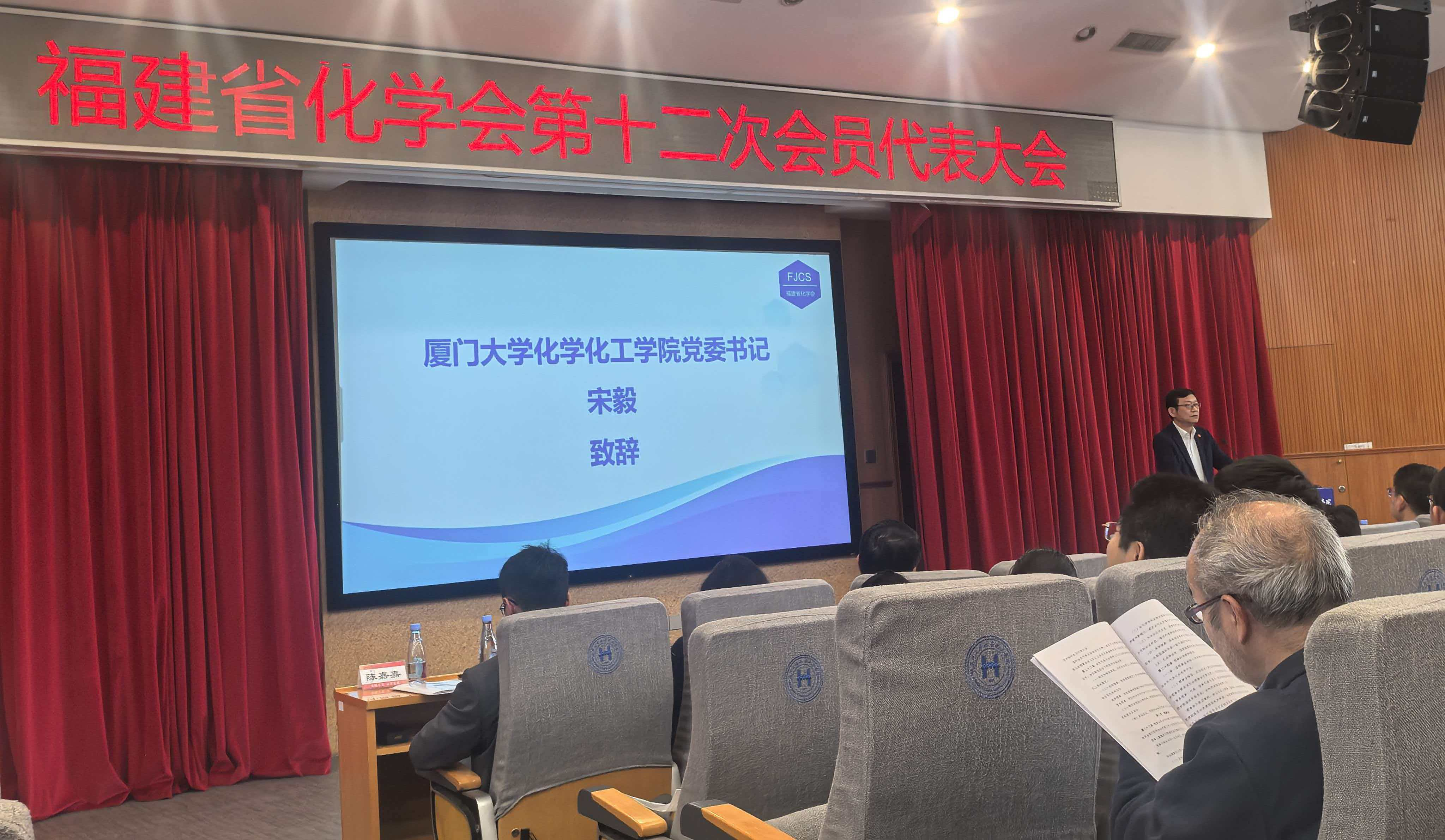 12月12日,福建省化学会第十二次会员代表大会在厦门大学思明校区化学楼举行,来自全省高校、科研院所等单位的130名代表参会,学院化工系赖文忠教授、赵炎博士、陈小向博士参加,厦门大学化学化工学院党委宋毅书记到会指导并致辞,会议由省化学会第十一届理事会副秘书长谢在来教授主持。