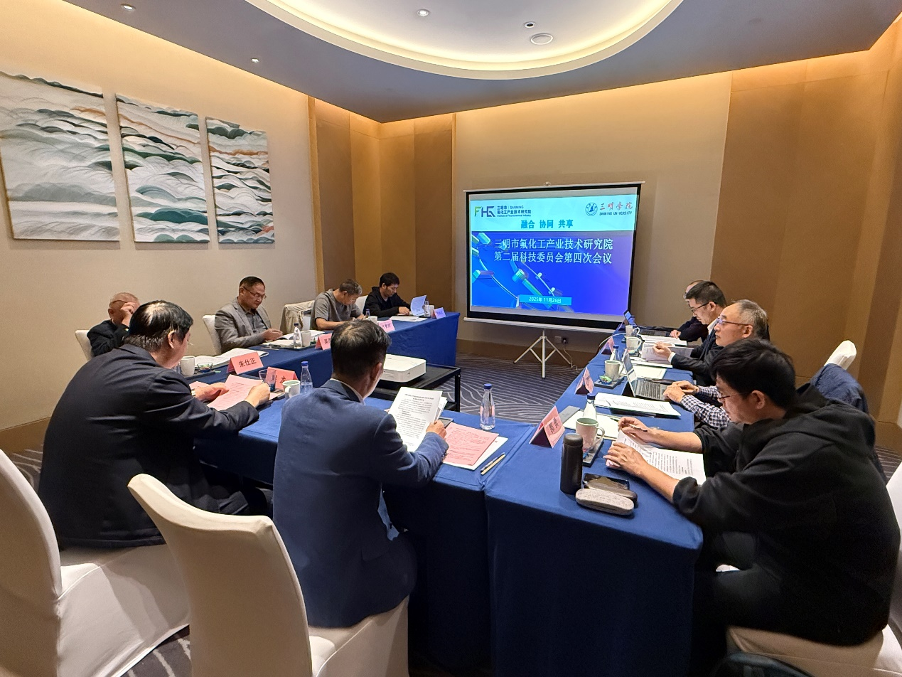 11月26日,由我校主办的三明市氟化工产业技术研究院成功召开了第二届科技委员会第四次会议。会议由研究院科技委员会常务副主任念保义教授主持,副校长吴龙、研究院科技委员会专家和资源与化工学院、氟化工研究院相关人员出席会议。