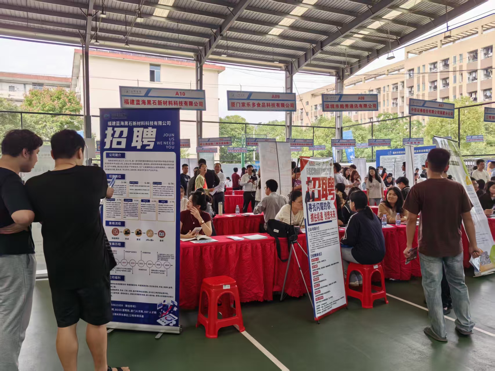 11月8日上午,三明学院2025年校友企业专场招聘会在北区雨盖篮球场如期举行。校领导,三明市人力资源和社会保障局,党政办、宣传部、统战部(校友会)、学生处,各二级学院代表、校友分会、毕业班辅导员及2026届毕业生参加了活动。学院邀请了厦门家乐多食品科技有限公司、福建三明阿福硅材料有限公司、福建蓝海黑石新材料科技有限公司、国药控股三明分公司等10家校友企业到校开展招聘。