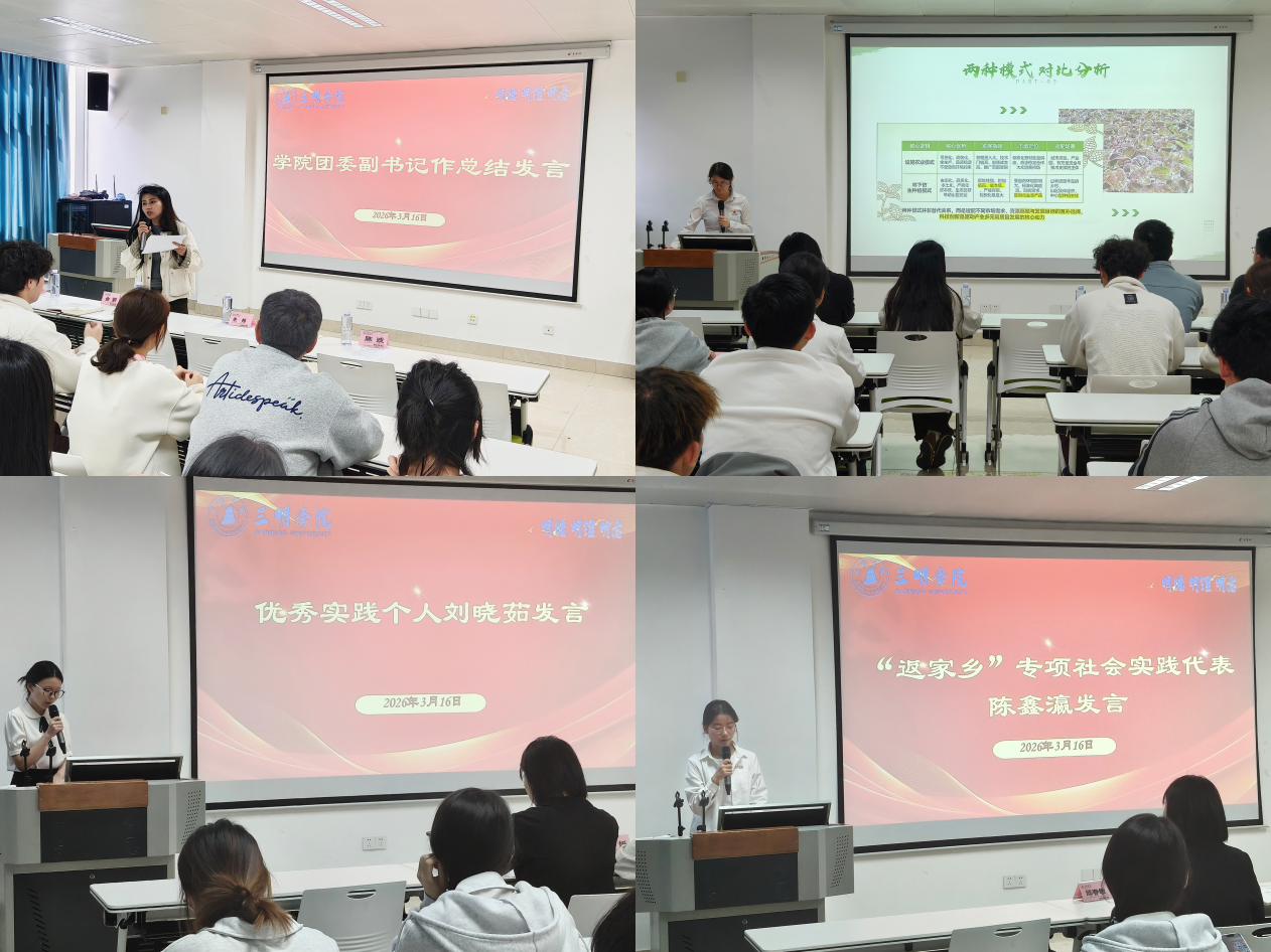 会上,院团委学生兼职副书记汇报了寒假社会实践情况,优秀实践代表及“返家乡”代表分享了扎根实践、服务基层等真切感悟。余妍老师总结指出,社会实践是锤炼本领、涵养劳动精神的重要载体,希望同学们将实践收获转化为成长动力,践行青年担当。