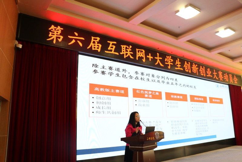 首先,杨红梅老师宣讲了《三明学院大学生科技创新奖励方法》,之后向全体教职工说明创新创业类比赛与单项学科竞赛的区别和联系,并对“互联网+”创新创业大赛项目的总体情况、项目评判和来源、项目基本要素、项目具体实施进行了详细解说。随后,杨红梅老师讲述了在面对评审时的一-些注意事项和答辩时的一-些实用性技巧,为教师们预参加双创竞赛提供了帮助,使得教师们了解到自己的策划书中存在的缺陷,优化了自己的策划案的同时,也收获了许多方法,做到尽善尽美。最后,杨红梅老师向大会人员展示了由她带领的团队制作并获得奖项的“紫云鸟生态”项目,为“第六届互联网+大赛动员会”添上完美的句号。、