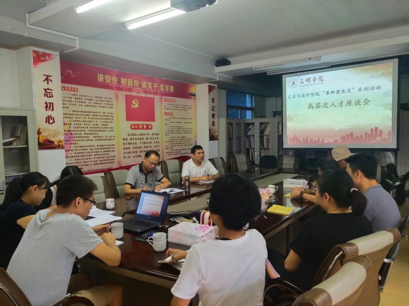2020年9月11日下午,围绕“尊师爱生月”系列活动,艺术与设计学院在院会议室召开高层次人才座谈会。罗奋涛书记、邱国鹏院长等出席了本次座谈会,与高层次人才一同共商学院发展大计。