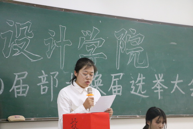 演讲结束后,由学生会主席石洋宣读了《三明学院艺术与设计学院学生会部长选举办法》,并由主席团负责人分发选票。在大会在公平和公正的原则下,投票前展示了空票箱,全体学生会成员于现场进行投票,经过投票、检票、唱票三个环节。最后换届选举在主持人公布选票结果后落下帷幕。