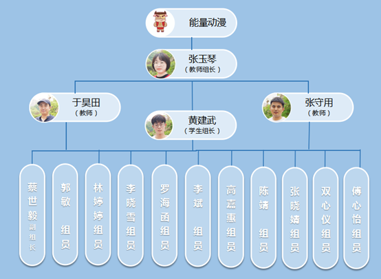 能量动漫工作坊是由艺术与设计学院与海峡理工学院师生共建组成的一个师生队伍。其中专业老师有三人(张玉琴、于昊田、张守用),张玉琴老师是本工作坊的教师负责人。