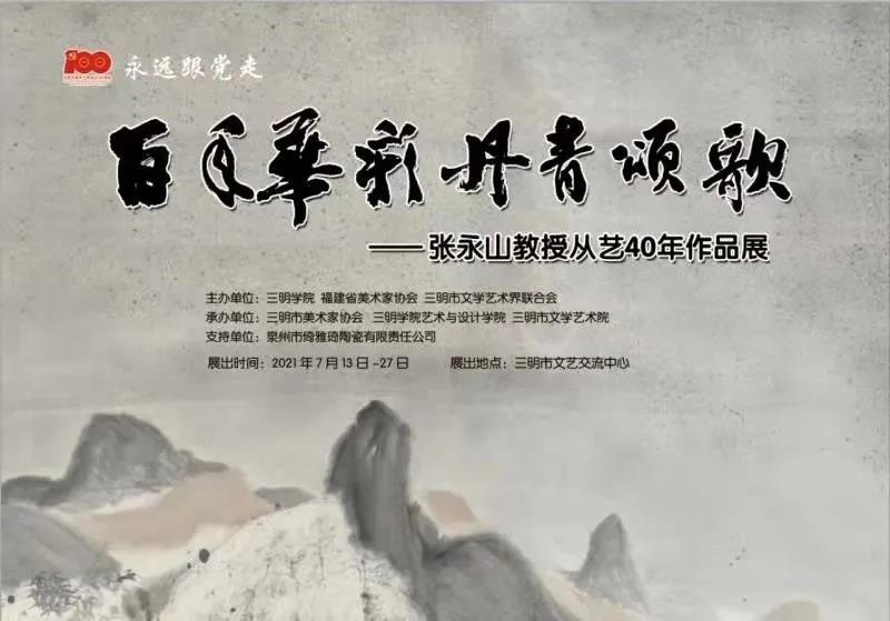 今年是中国共产党成立100周年。回顾百年,党带领全国各族人民走过了艰辛的奋斗历程,迎来了中华民族伟大复兴的新时代。2021年也是张永山教授从艺40周年,本着弘扬爱国主义精神的宗旨,追溯40年与祖国共同发展的艺术历程,以张永山教授历年创作为时间线,反映我党各个历程的时代风采,三明学院艺术与设计学院举办“百年华彩 丹青颂歌——张永山教授从艺40年作品展”。
