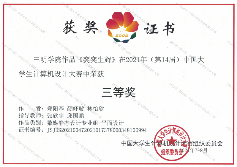 2021年中国大学生计算机设计大赛落下帷幕,由艺术与设计院张欣宇老师所负责的2021年大学生科技创新竞赛项目,共获得获得国家级三等2项,省级一等奖3项,省级二等奖4项,省级三等奖7项。