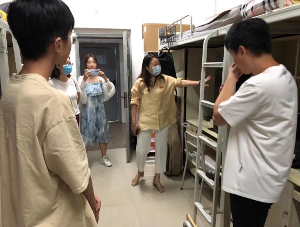 为了深入了解新生入学后在宿舍的生活状况,进一步推进“一站式”学生社区建设。9月13日晚我院党委副书记游耿林、副院长信玉峰、院长助理伊林春深入2022级新生宿舍对大家加入艺术与设计学院表示热烈欢迎,对大家在宿舍的生活状况表示关心与关怀。
