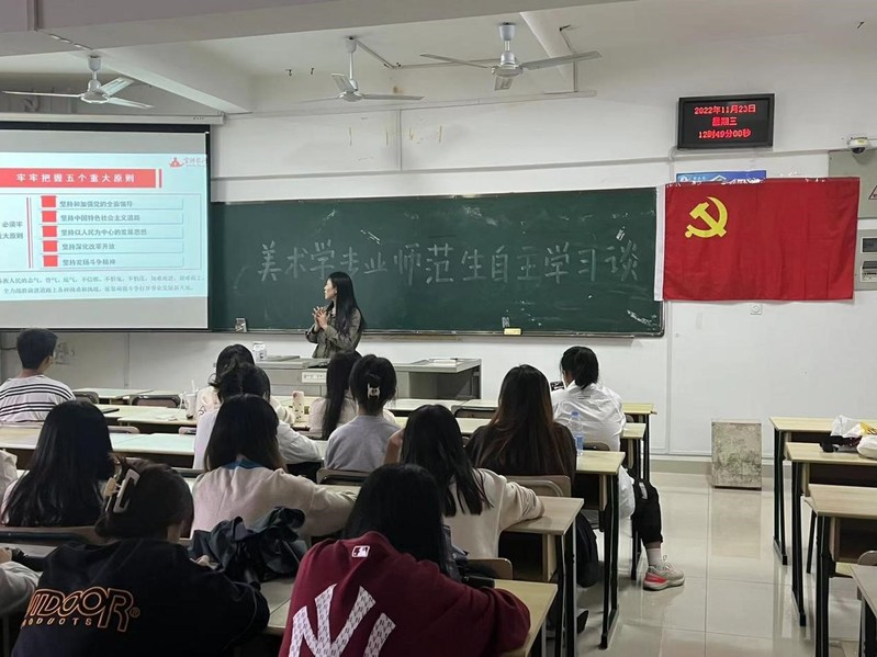 艺术与设计学院高度重视美术学专业师范生的人才培养质量,今年,美术学专业顺利通过师范专业认证,在学院领导及专业教师的关怀和指导下,美术学专业学生近年来教师资格证通过率稳步提高,2022届美术学专业学生教师资格证通过率超过90%,美术学专业学生在师范生教学大赛以及书法比赛等省级师范生技能大赛中也取得优异成绩。此次座谈会也将激励美术学专业学生励志成为“践行师德、学会教学、学会育人、学会发展”理念的德智体美劳全面发展的优秀师范生而不断努力奋斗!