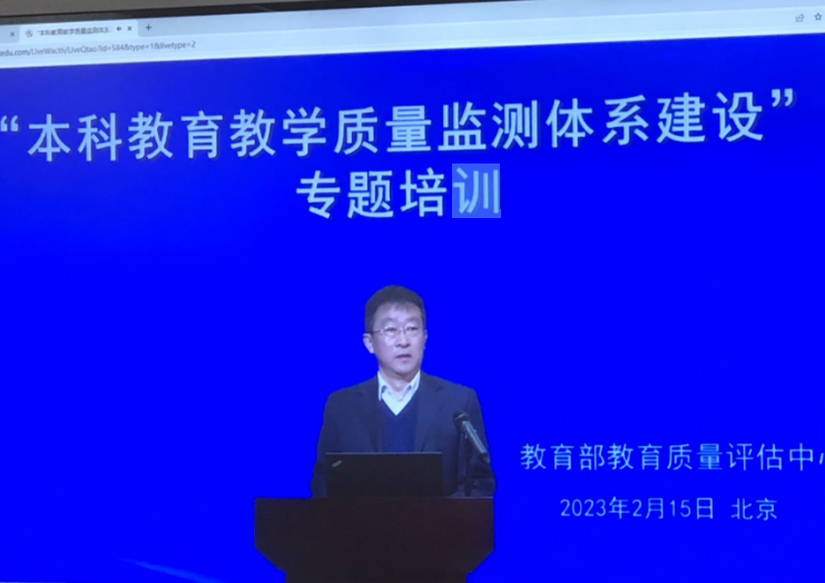 为深入学习贯彻党的二十大精神,帮助高校了解全国本科教育教学质量、同类院校发展,以及本科教育教学质量监测体系建设情况,推动高等教育高质量发展,教育部教育质量评估中心在线开展“本科教育教学质量监测体系建设”专题培训。2月15日上午,我院分管教学副院长信玉峰于博学楼422会议室参加培训。