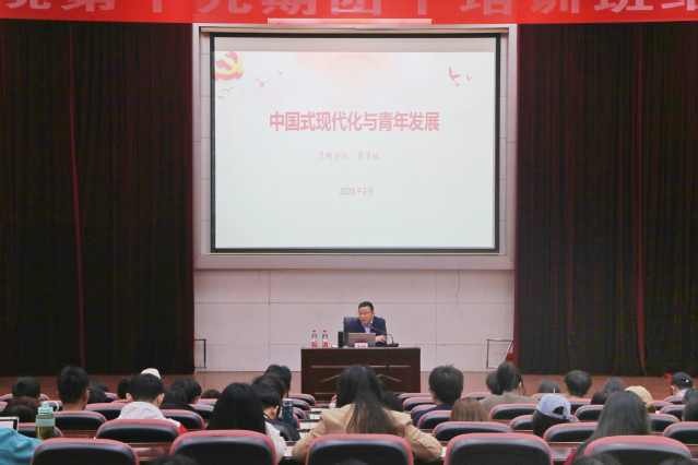 3月15日,校党委副书记廖景榕以《中国式现代化与青年发展》为题,为艺术与设计学院2020级学生、文化传播学院汉语言文学专业支部学生党员和第八期大学生骨干培训班全体学员讲授思政课。