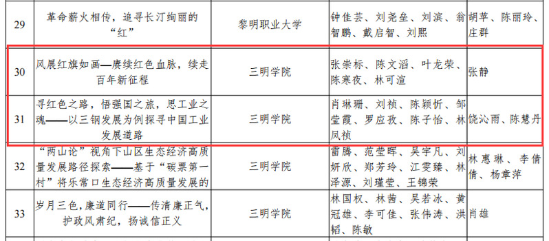 本次竞赛“红色专项”活动中,全省共评出特等奖作品5件、一等奖作品15件、二等奖作品30件、三等奖作品50件。艺术与设计学院成绩喜人,作品《山川无阻,一往情深:书写新时代对口合作新篇章——基于三明市的沪明合作成效调查研究》荣获二等奖;《风展红旗如画——赓续红程色血脉,续走百年新征程》、《寻红色之路,悟强国之旅,思工业之魂——以三钢发展为例探寻中国工业发展道路》荣获三等奖。