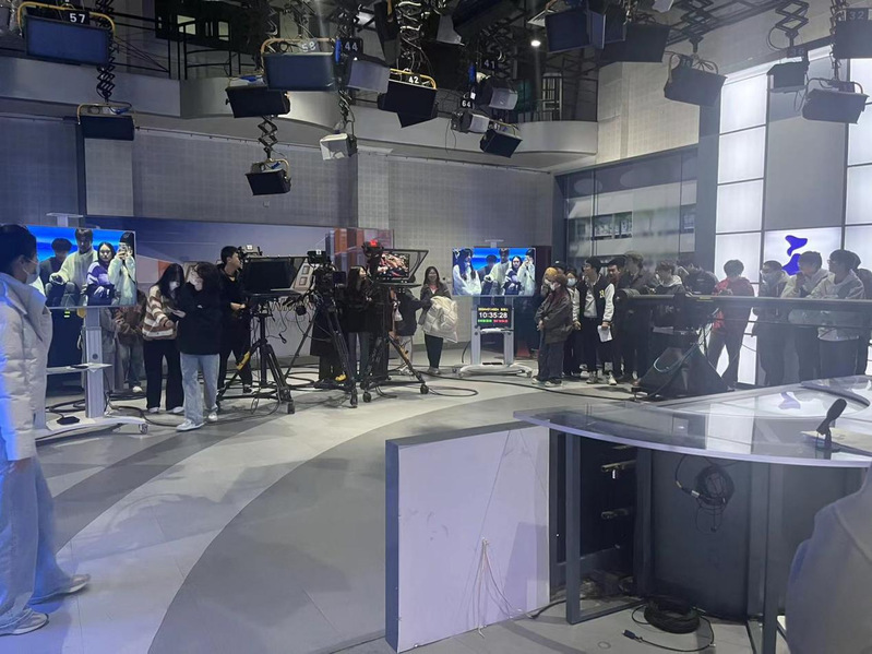 三明市融媒体中心张玫芬主任带领学院师生参观了三明市融媒体中心演播厅,讲解了演播厅的功能和日常使用情况。师生们通过观看宣传片和听取报告介绍,深入了解了三明市融媒体中心的发展情况。在三明市融媒体调度指挥中心,负责人详细介绍了云平台建设总体思路、矩阵建设情况及融媒产品的生产流程,并组织同学们参观体验了高清演播室,同学们近距离沉浸式体验了现代化的新闻宣传方式、方法及媒体记者的日常工作。