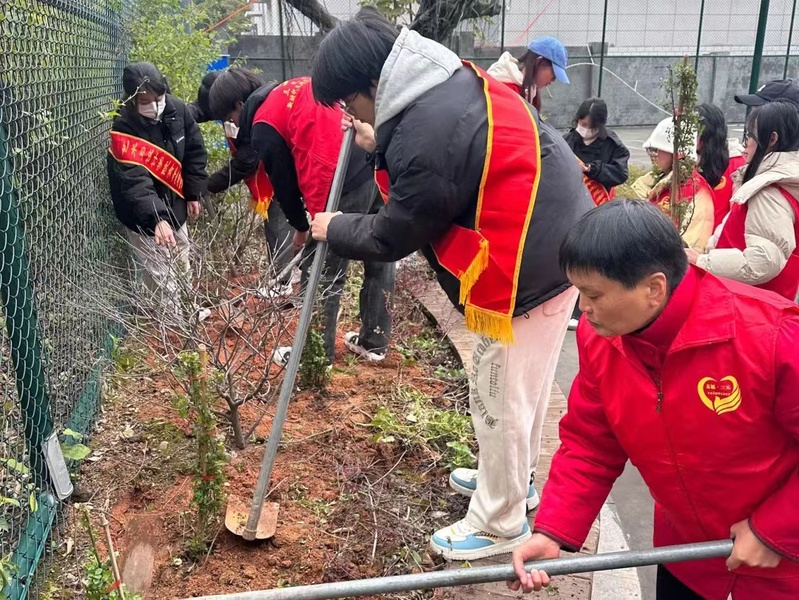 为弘扬雷锋精神,增进学生对绿色环保的认识,艺术与设计学院组织各民族学生与社区居民于3月3日在群二社区开展雷锋月“共植民族团结同心树”活动。