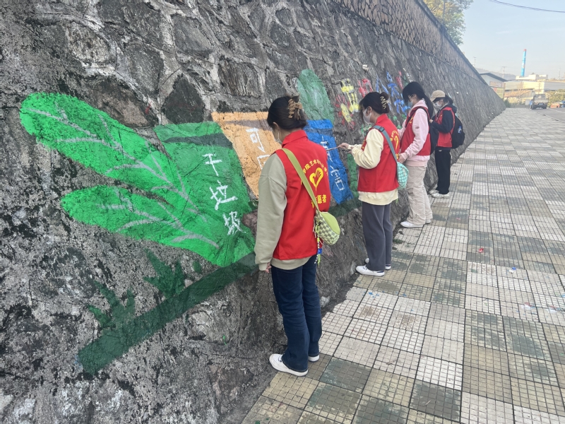 来自美术学、视觉传达设计、环境设计等专业的志愿者们发挥艺术特长,从环保保护视角出发,为桃源社区设计了“垃圾分类”主题墙绘,干垃圾、湿垃圾、有害垃圾……一幅生动形象的垃圾分类卡通宣传图及“垃圾分类我先行”等标语呈现在社区道路旁的墙体上,为社区打造出一条独特的风景线。志愿者们纷纷表示,希望用生动活泼的墙体彩绘让社区居民增进对绿色环保的认识,用艺术激发居民们的关注,共同建设美丽社区。