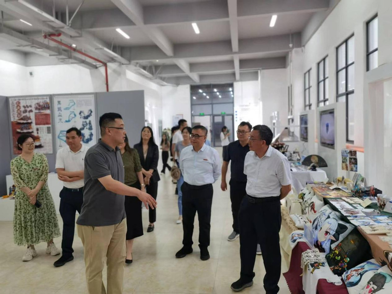 校领导一行先后参观了动画、产品设计等专业的学生作品,听取同学们对毕业设计作品创意思路、创作过程等的介绍,并与同学们亲切交流。