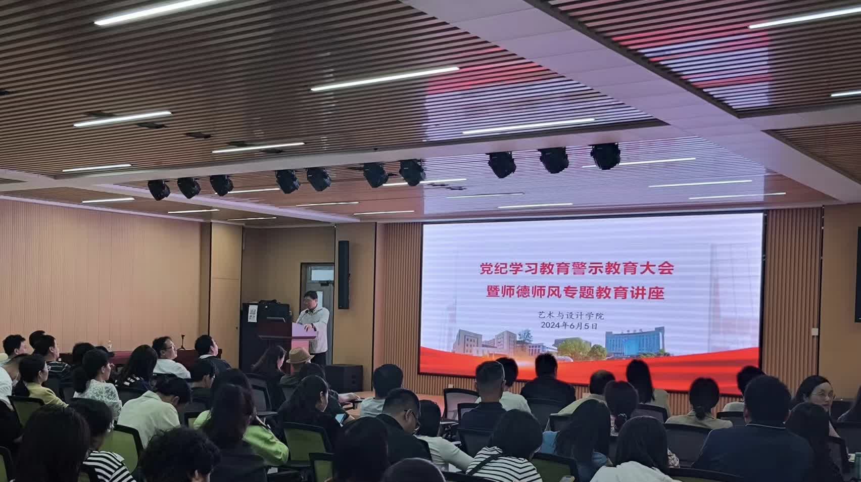 6月5日下午,艺术与设计学院于艺术楼345会议室召开党纪学习教育警示教育大会暨师德师风专题教育讲座。会议由学院党委书记廖响华主持,全体教职工参加。