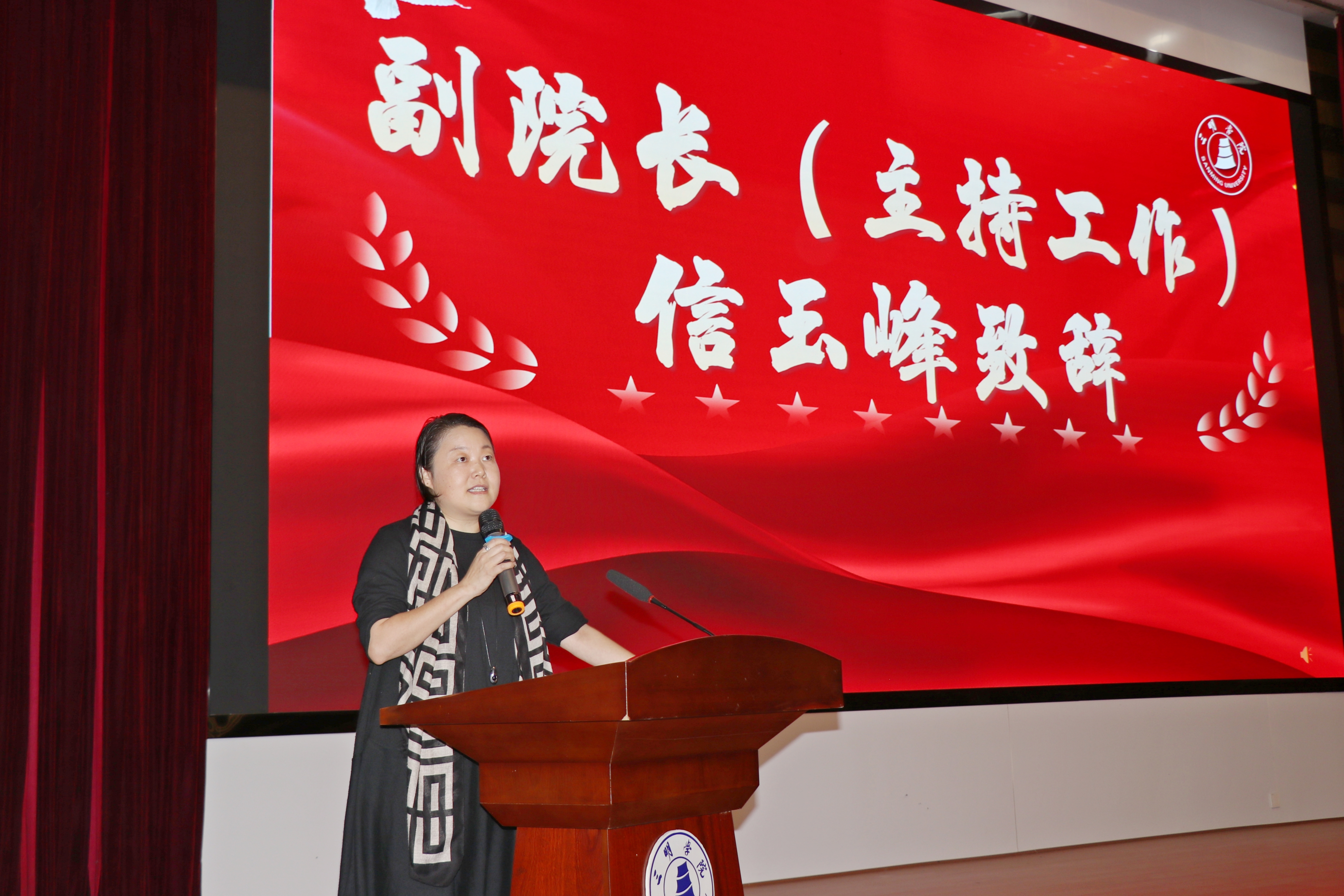 信玉峰副院长(主持工作)代表学院致辞,对2025级新生的到来表示诚挚欢迎。她围绕学院办学理念、学科特色与发展愿景展开介绍,勉励新生珍惜大学时光,夯实专业基础,拓宽艺术视野,在探索与实践中实现自我成长。