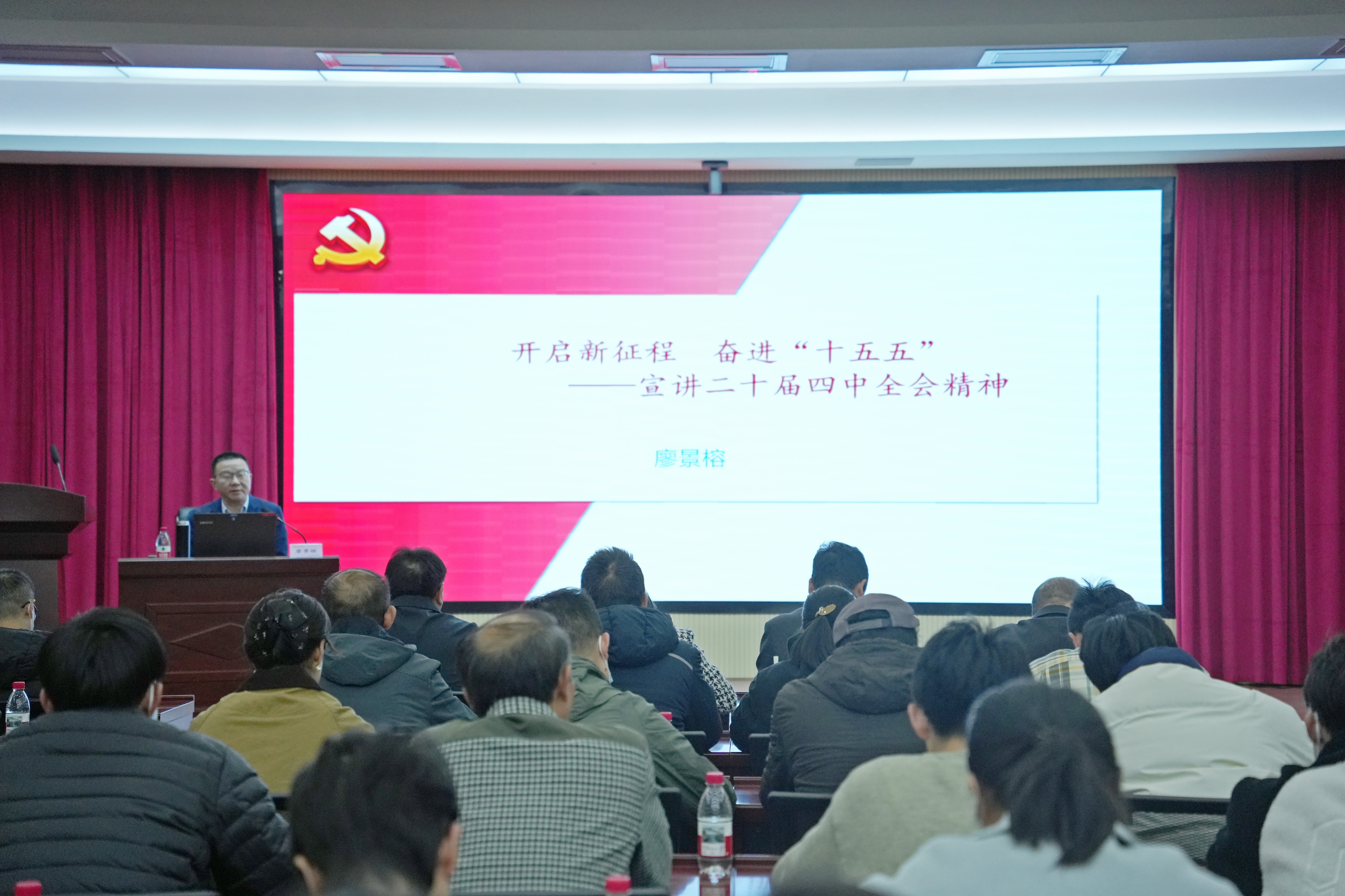 为深入学习宣传贯彻党的二十届四中全会精神,11月26日,校党委副书记廖景榕以“开启新征程 奋进‘十五五’”为主题,为艺术与设计学院、文化传播学院开展专题宣讲。两院领导班子成员、科室负责人、系主任、党支部书记及联系党支部师生党员共同参加学习。