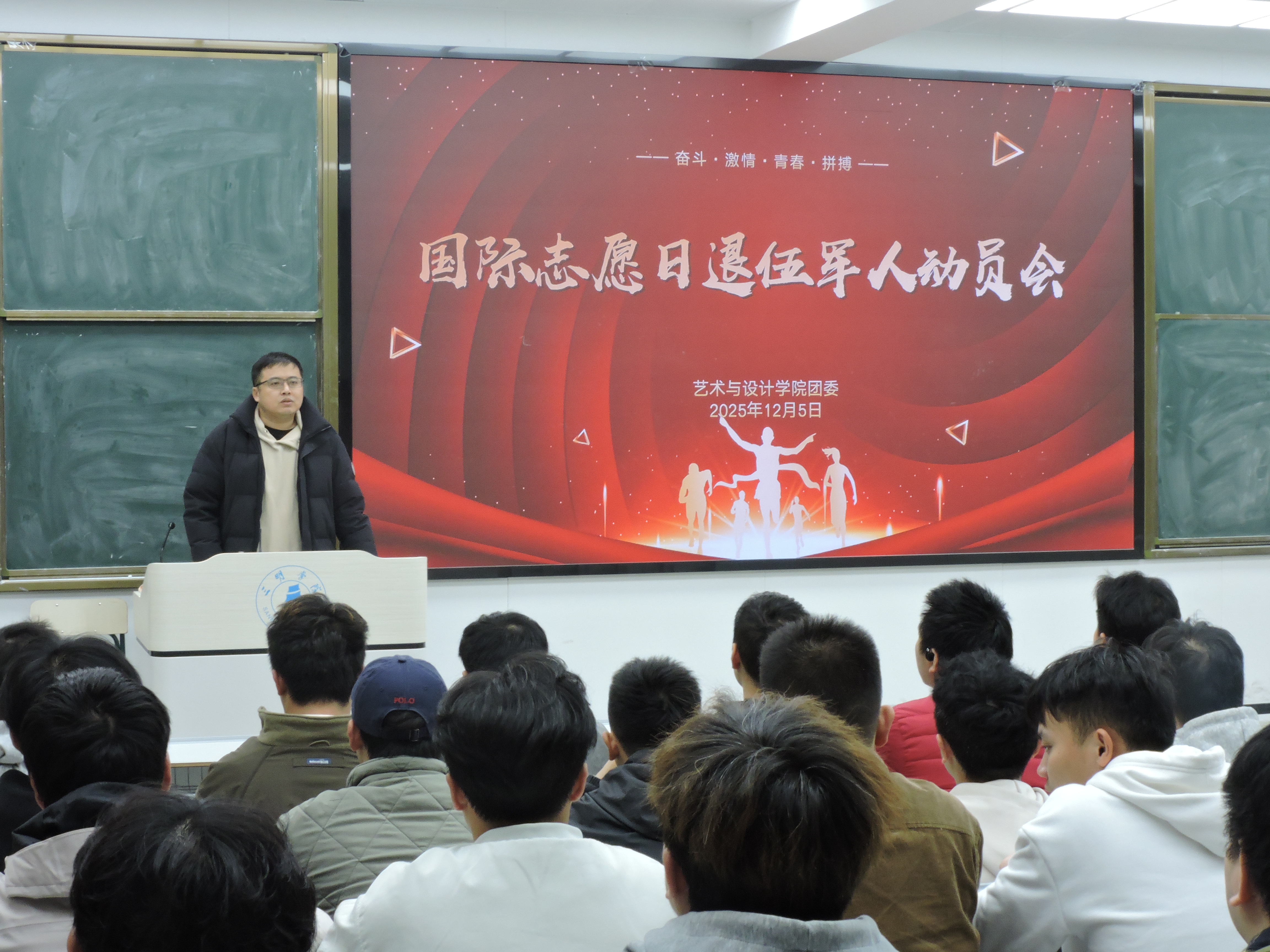 12月5日,正值国际志愿者日,艺术与设计学院在厚德楼103、115教室召开志愿服务动员会。学院团委负责人、退伍学生代表及各班级学生骨干参加会议。