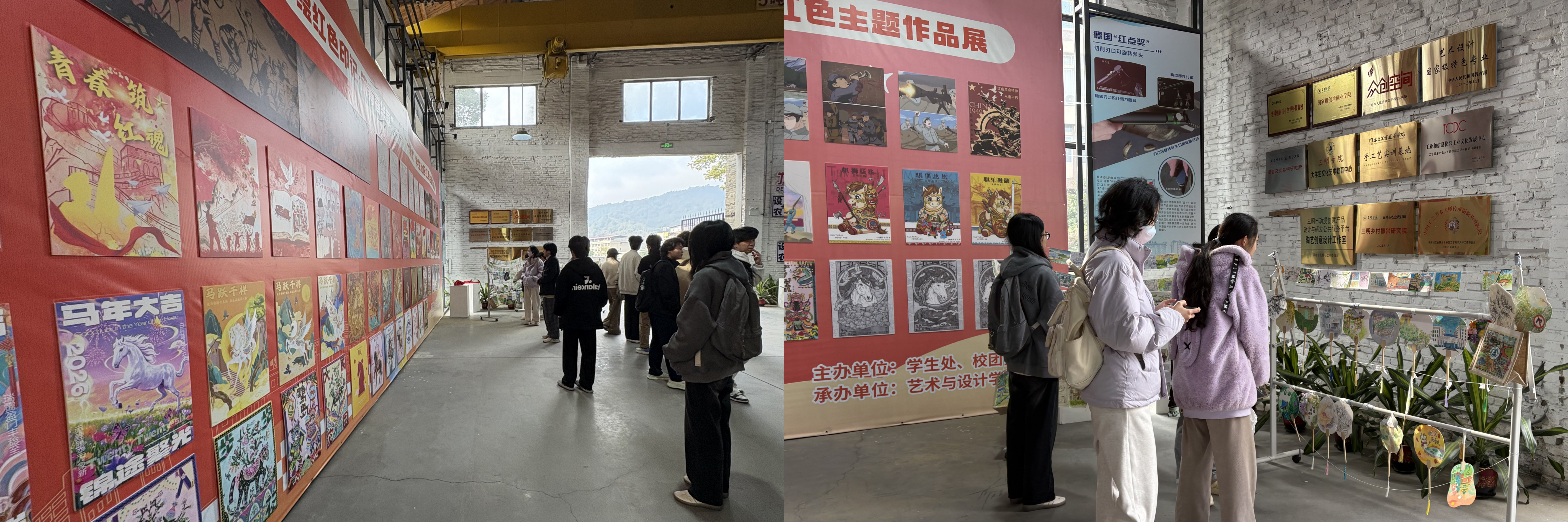 展厅内,一件件精选作品分区分列,构筑起一道连接历史与当下的视觉长廊。这些作品紧密围绕红色主题,通过多元艺术形式,不仅展现了学子们扎实的艺术功底和创作热情,更体现出他们对红色文化的深刻理解和真挚情感,彰显出新时代青年学子昂扬向上的精神风貌。
