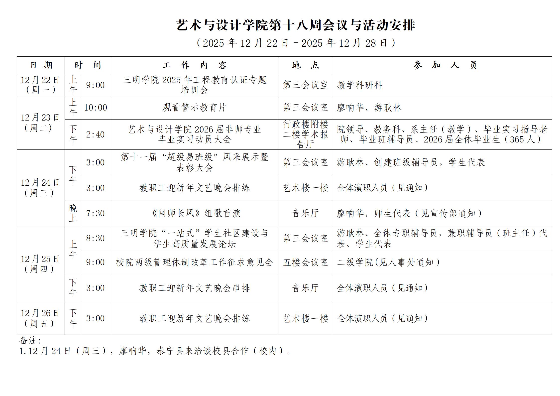 第十八周会议与活动安排(2025年12月22日-2025年12月28日)