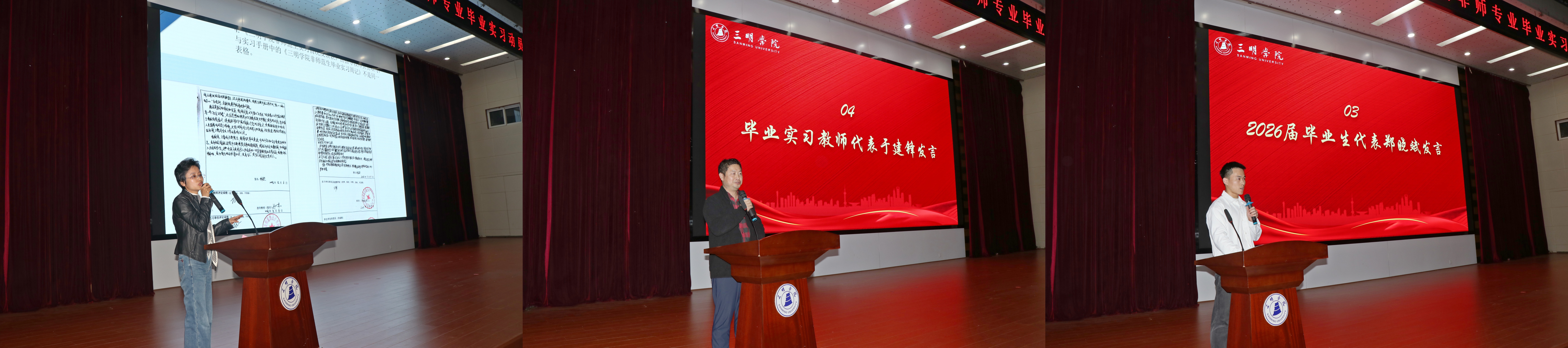 毕业实习指导教师代表于建锋鼓励学生积极投入实习,促进理论联系实际,提升综合能力。毕业生代表郑晓斌表达了对实习机会的珍惜与努力提升专业技能的决心。